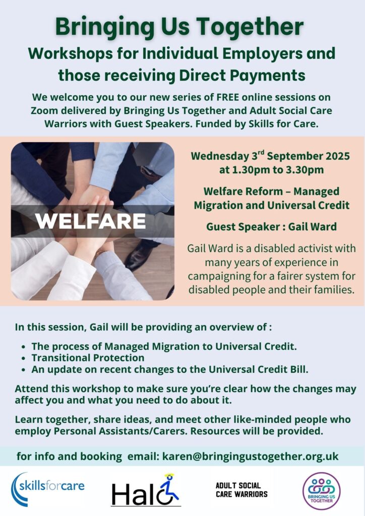 We welcome you to our new series of FREE online sessions on Zoom delivered by Bringing Us Together and Adult Social Care Warriors with Guest Speakers. Funded by Skills for Care.